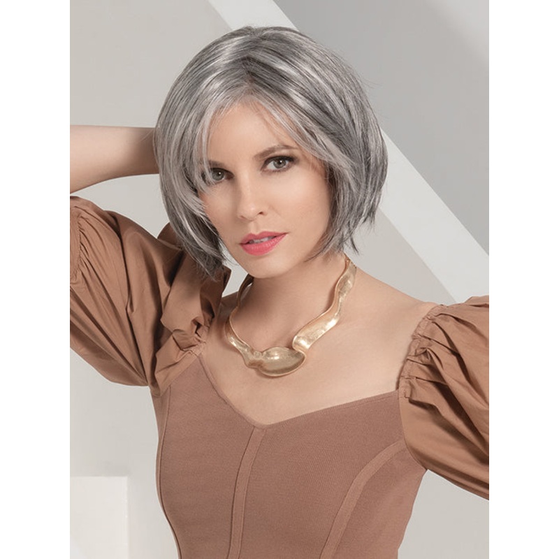 Star by Ellen Wille is a sophisticated, sleek chin-length bob with stunning movement. This look is celebrity-worthy but ready-to-wear in seconds. The fringe falls at eye level and is able to be pulled back or swept to the side with ease. The perfectly placed layers are texturized to provide light, airy movement. The impeccable lace front offers versatile styling and the most seamless, natural hairline. The premium synthetic fiber used to create the Star mimics the look, feel, and movement of biological hair.