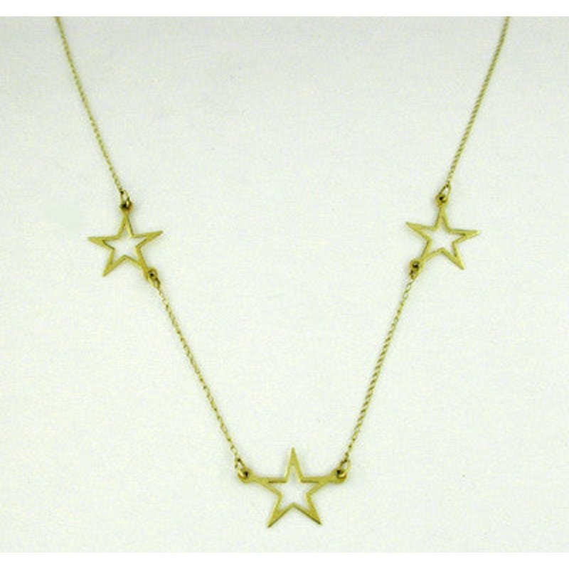 Reward yourself for a job well done with not one but three gold stars! This 14K gold star necklace measures 15" inches long and features three high polished gold stars permanently anchored in place for a lovely effect that is a fresh change from the ordina