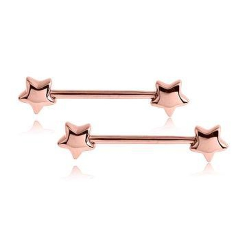 These 14 gauge star nipple barbells are made from rose gold PVD coated 316L stainless steel with external threading. Choose your size below.
