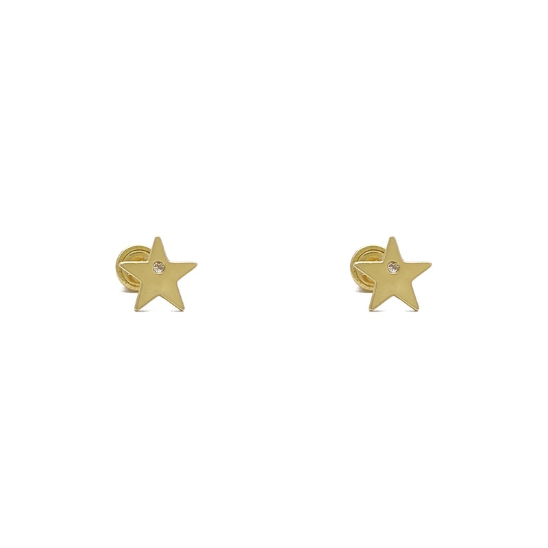 Earring Back Type:ScrewBackPrecious Metal: 14 Karat Yellow GoldGemstone: Cubic ZirconiaRound shaped: WhiteStones may be upgraded upon requestStar Size: 5.3 mm*Post Length: 8.25 mm**All weights and measurements are approximate.Please contact us if you have