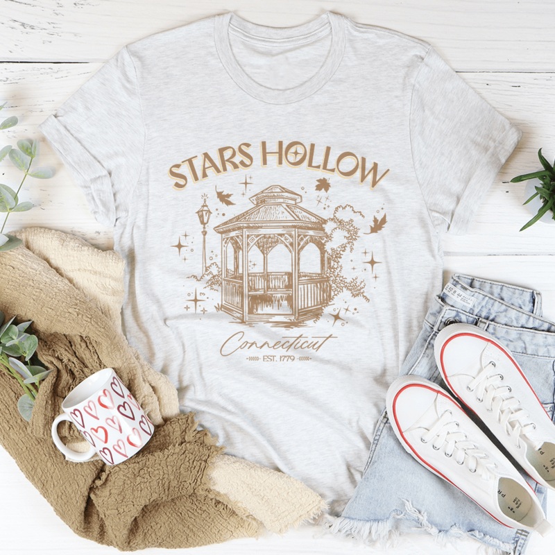 Step into the charming world of Stars Hollow with this delightful womens T-shirt, proudly proclaiming “Stars Hollow, Connecticut.” Perfect for fans of the iconic show that brought this quaint town to life, this tee invites you to celebrate your love for the fictional yet beloved locale.