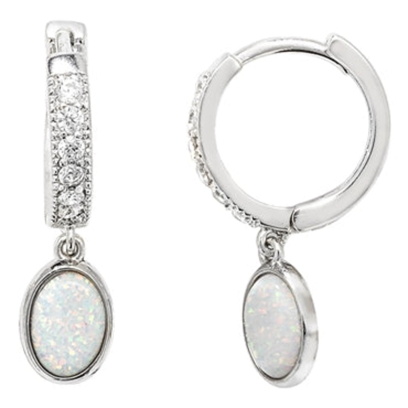 Crafted with high-quality Sterling Silver, the hinged hoop design showcases the sparkling cz and opal stones. These earrings add a touch of elegance and sophistication to any outfit.