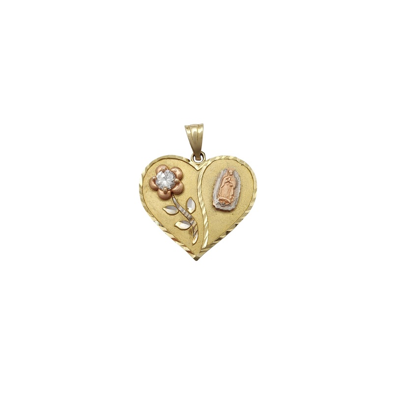 Stone-Set Rose Virgin Mary Heart Pendant (14K)
