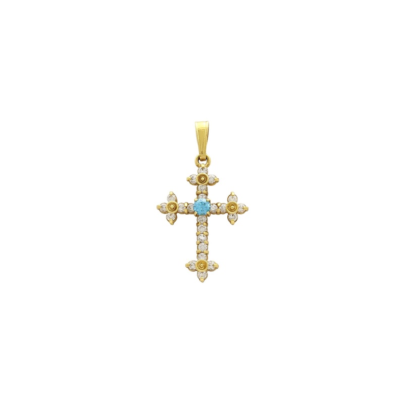 Stoneset Budded Cross Pendant (18K) Light Blue