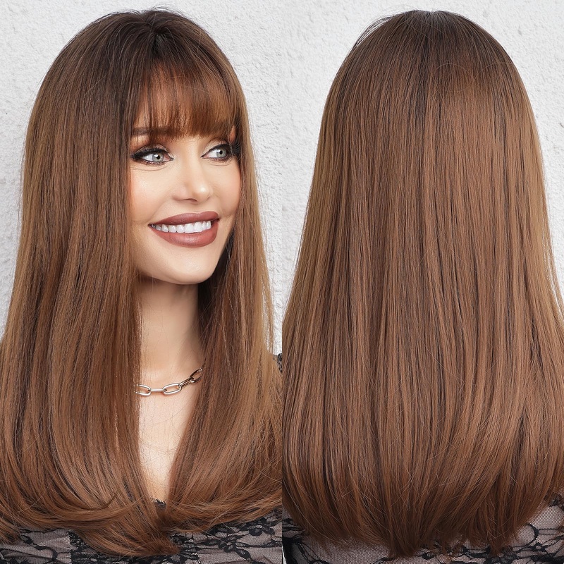Introducing our Straight Layered and Heat-Resistant Ombre Brown Synthetic Wig, the perfect choice for effortlessly chic and stylish hair transformations. Crafted with meticulous attention to detail, this long straight wig with bangs boasts exquisite color, perfect gloss, and a well-designed style that’s sure to turn heads.