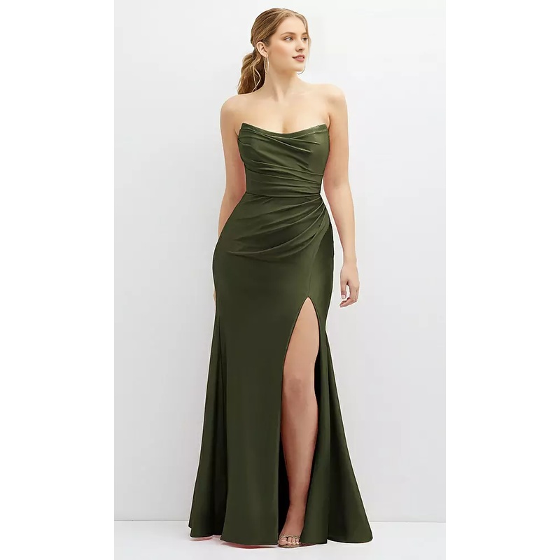 Strapless off shoulder collar with drooping satin mermaid prom dress