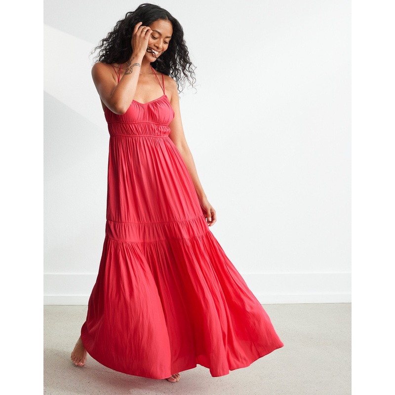 strappy shirred dress