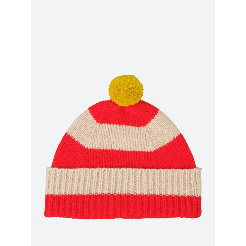 Stripe Pompom Hat POPPY/OATMEAL EACH