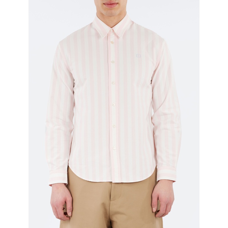 Striped Shirt from Acne Studios made from high-quality cotton, it features a classic cut, long sleeves, and a subtle embroidered face logo. The pink and white stripes offer a fresh, refined look, making it versatile for both formal and casual styles.Classi