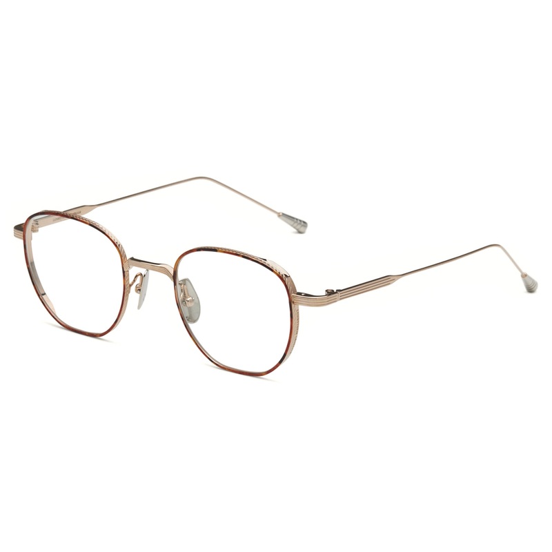 The Lunetterie Gnrale // Studio 54 is a lightly sculpted semi-round full beta-titanium frame with an engraved bridge. Other details include Olive eye rim lacquer with the signature end tip design as well as custom titanium nose pads and hairline design tem