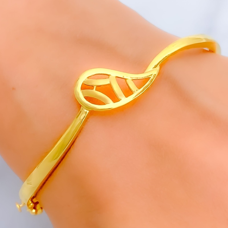 Stunning Striped Leaf 22k Gold Bangle Bracelet