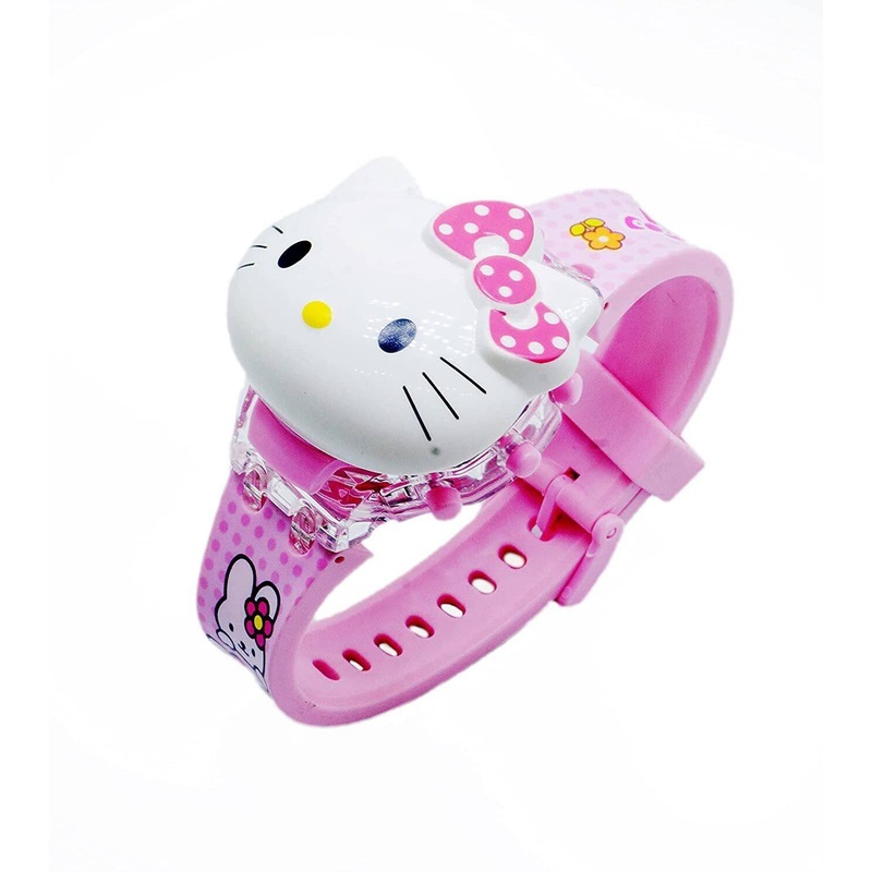 BrandStyle FreakDisplay TypeDigitalIdeal ForBoys & GirlsMechanismDigitalStyle Code3D Action Figure Hello Kitty Face Based Toy Design Digital Glowing Watch with Disco Music and Blinking Lights for Kids | for Boys Girls- Good Birthday Return GiftOccasionCasu