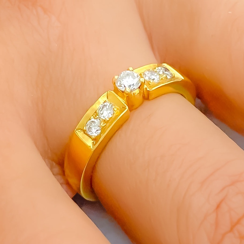This elegant 18k yellow gold ring, weighing 4.8 grams, embodies a subtle, chic design accented by 0.34 carats of round brilliant diamonds in F-G color and VS quality. Perfectly suited for understated elegance, this ring offers a refined sparkle that enhances any look without overpowering it. Sized at 6.5, with resizing options available, its ideal for those who appreciate a minimalist yet luxurious piece, making it versatile for both daily wear and special occasions. The sophisticated simplicity makes it a timeless addition to any jewelry collection