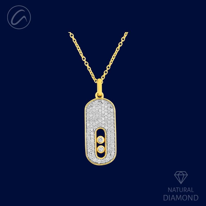 This exquisite 18k yellow gold necklace features an elongated oval pendant adorned with a 0.42-carat round brilliant-cut diamond of G-H color and VS clarity. Weighing 5.0 grams, the necklace measures 18 inches in length with a 1-inch drop, secured by a lobster ring clasp and includes 2 inches of adjustable links for a customizable fit. The combination of the lustrous yellow gold and the sparkling diamond creates a timeless piece that exudes elegance and sophistication. Ideal for those who appreciate classic design with a modern touch, this necklace is a versatile addition to any jewelry collection, suitable for both everyday wear and special occasions.