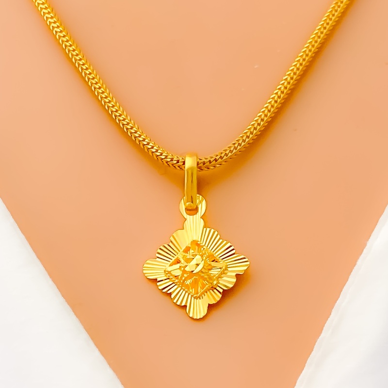 Elegant and effortlessly chic, this 22k yellow gold pendant showcases a refined design that complements any look with understated sophistication. Weighing 1.9 grams, its polished gold finish enhances the intricate craftsmanship, creating a luminous and tim