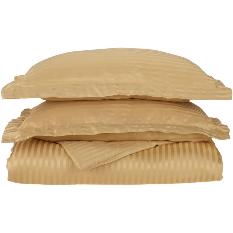 Superior 1500 Series 100% Brushed Microfiber 3-piece Full/Queen Duvet Cover Set Stripe, Gold – Super Soft and Wrinkle Resistant