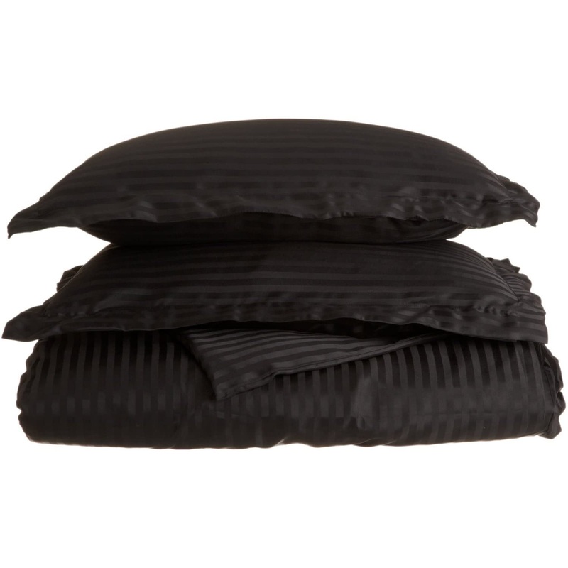 Superior 1500 Series 100% Brushed Microfiber 3-piece King/California King Duvet Cover Set Stripe, Black – Super Soft and Wrinkle Resistant