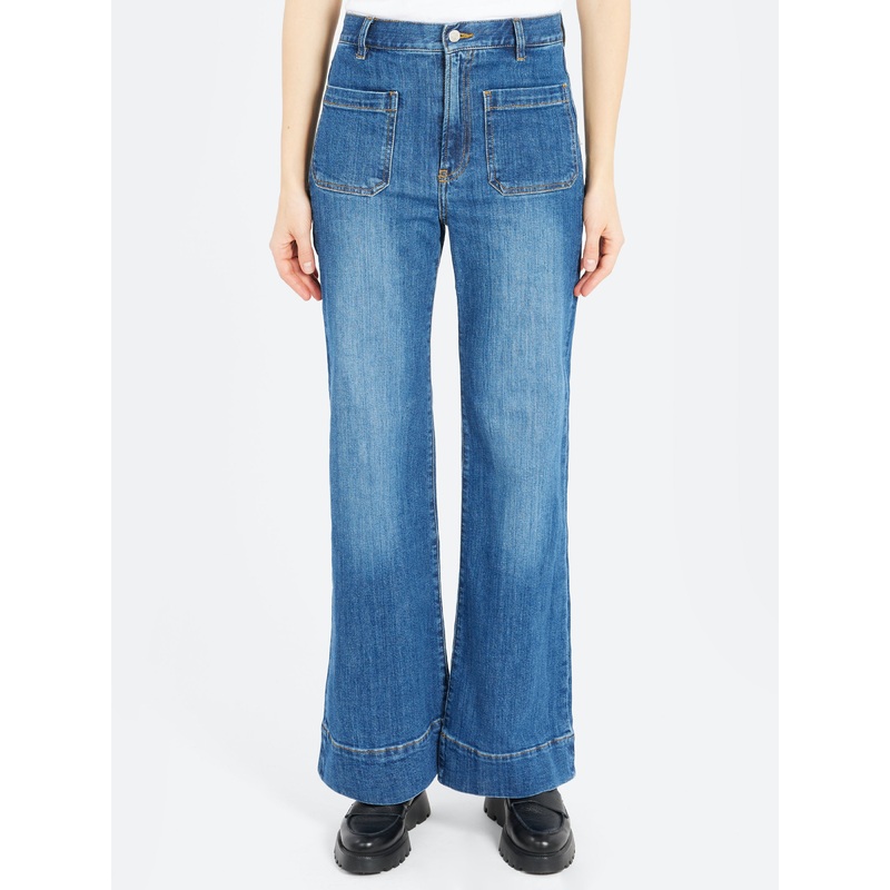 St. Monica looks to sailor archives of the late 1960s with its patch pockets, flares and wide hemlines. Made in vintage-washed and distinctively faded deep blue organic denim, with Jeanericas signature stretch composition that enriches the jeans with endur