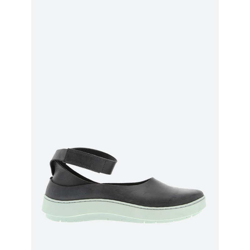 Trippen Lake is a sporty, feminine ballerina. The lines reflect the form of the sole.Ankle strap with Velcro strapSlip-on styleRound toeCork footbedTonal stitchingTonal soleMaterialsUpper: leatherLining: leatherOutsole: rubberMade in GermanySize GuideFits