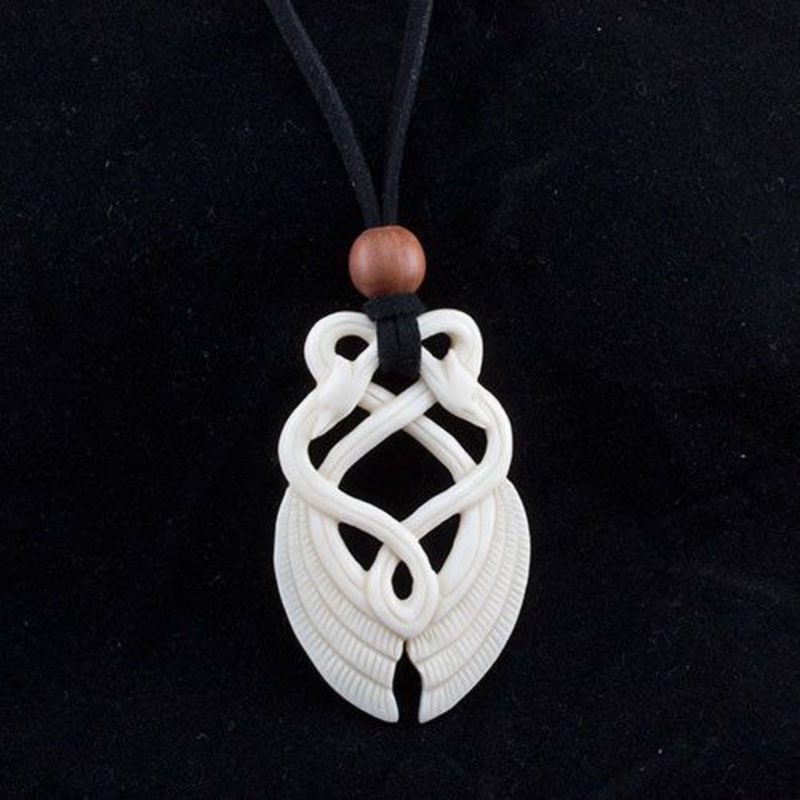 The well known swan stirrup is now a pendant! This well crafted hand-carved bone pendant is designed from the Urban Vikings Collection. The swans are interlocked in such an elegant way, representing love and connection. This pendant compliments any style.