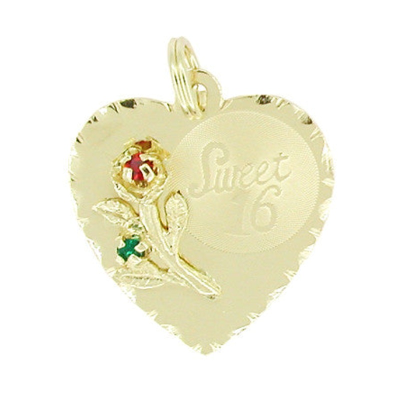 Sweet 16 Heart Charm Pendant in 14 Karat Gold