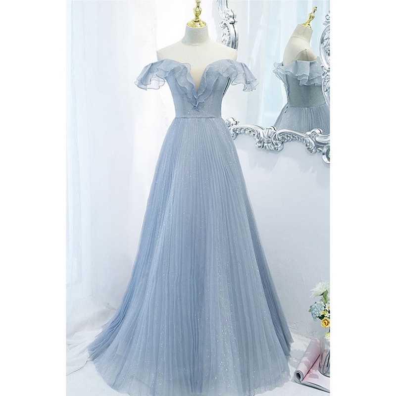 Be the first to review “Sweet Sky Blue Sparkling Pleated Short sleeved Off Shoulder Ball Dress Sky Blue A-line Princess Backless Tie with Ruffle Edge and Floor Length Evening Dress”