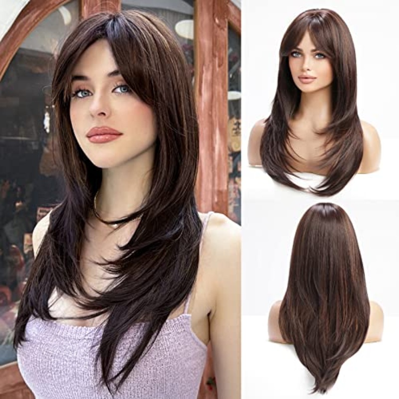 Synthetic Layered Hair with Highlighted BangsGet the look you want in minutes with this Synthetic Layered Hair with Highlighted Bangs. This stylish wig is made of heat-resistant fibers and is suitable for any occasion. Style it with a curling iron (please