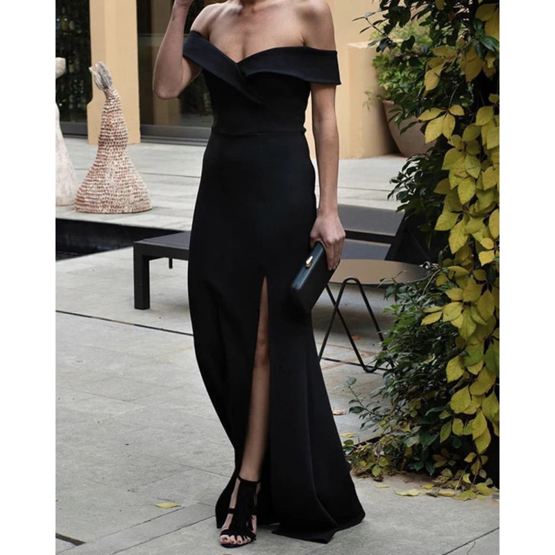 Tail tail off shoulder ball dress with satin side slits