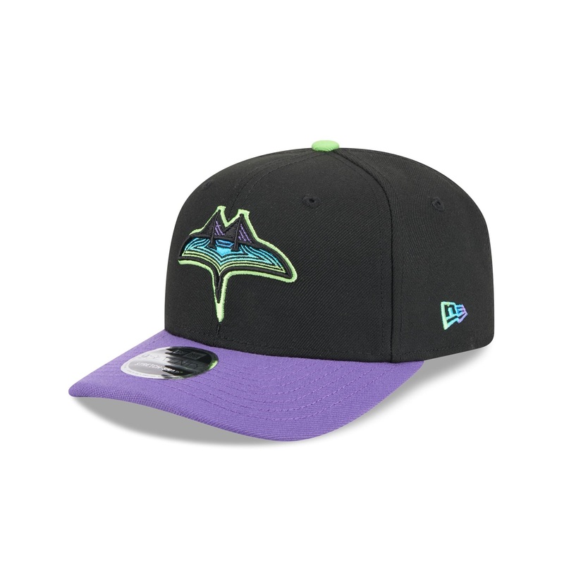 The Tampa Bay Rays City Connect 9SEVENTY Stretch-Snap features an embroidered Rays logo at the front panels with an MLB Batterman logo above a snapback closure at the rear.