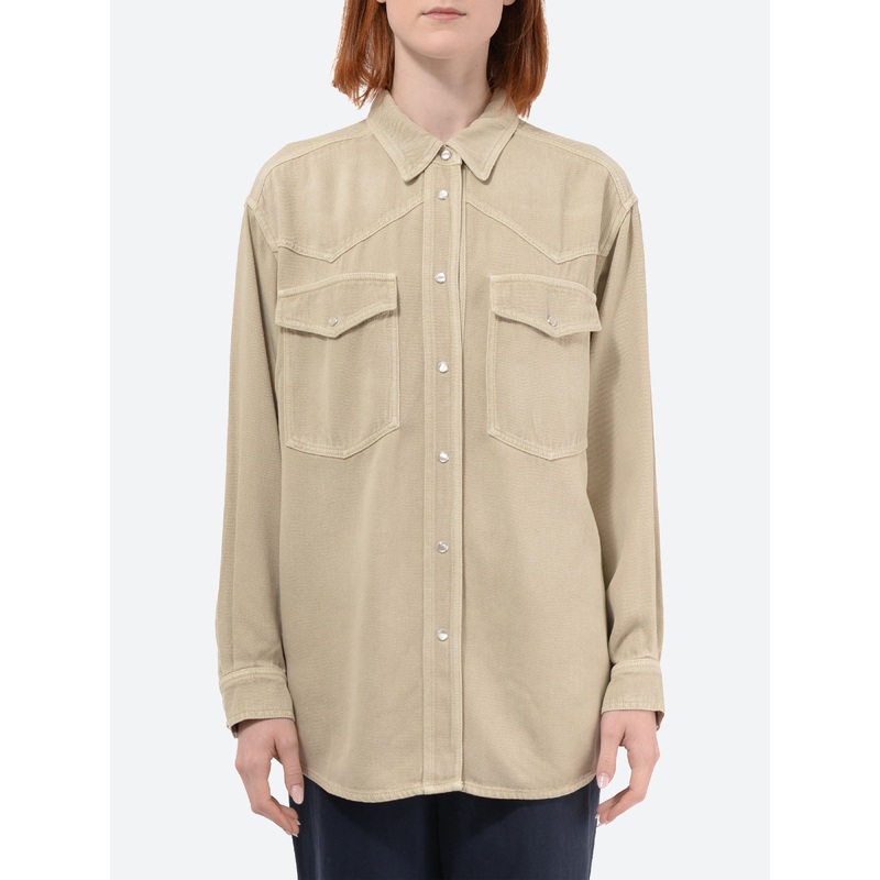 Inspired by vintage western wear, Isabel Marant Taniami shirt is crafted from fluid denim and cut to a relaxed fit.Point collarFront snap button closureFlap pockets at chestTwo button cuffsRounded shirt hemMaterialsFabric Content: 100% lyocellSize GuideBri