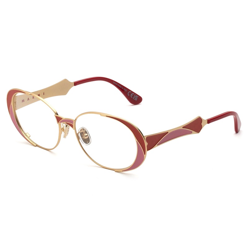 Designed exclusively for Marni, Tarassqa is a precision-molded high-grade metal, hand-filled with enamel detailing, and finished with Italian acetate temple tips. Mounting clear display lenses in base 4. Premium eyewear handmade in Italy. Includes Marni bo