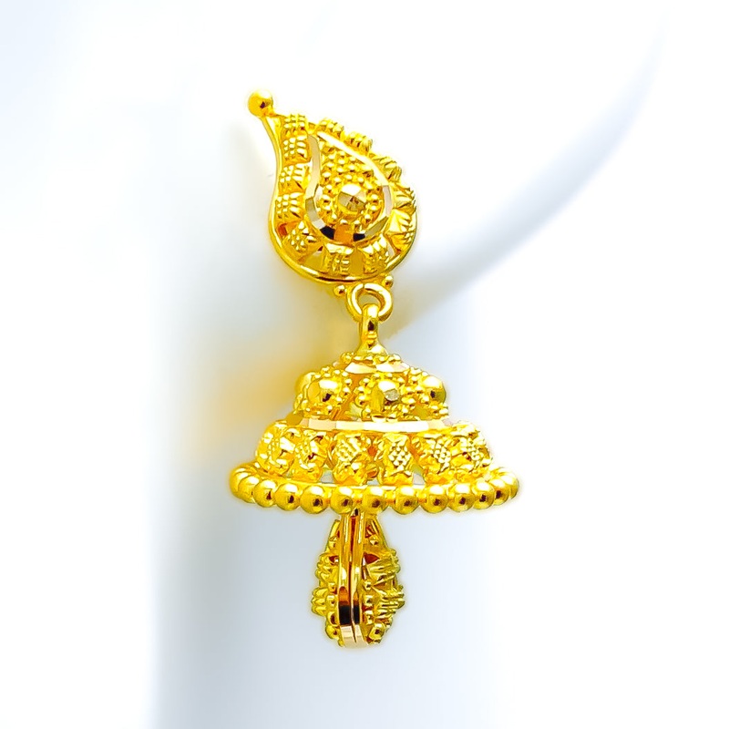 Tasteful Paisley 22k Gold Jhumki Earrings