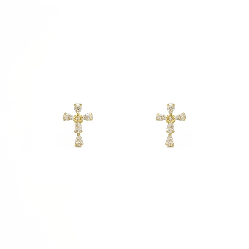 Teardrop Cross Stud Earrings (14K)