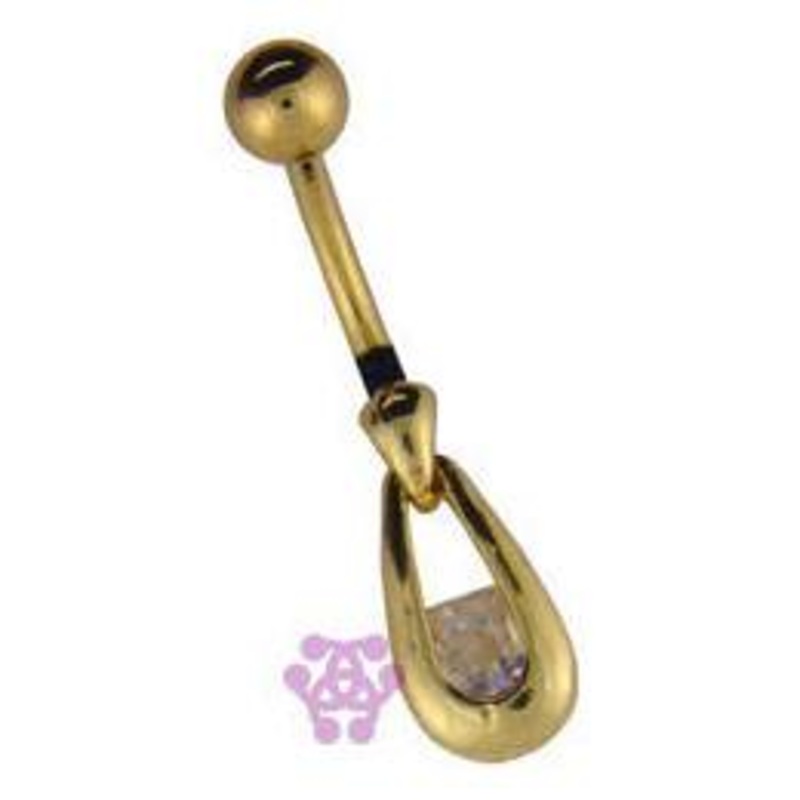 Teardrop Gem Gold Belly Dangle 14 gauge – 3/8″ long (10mm) Clear Gold Stainless