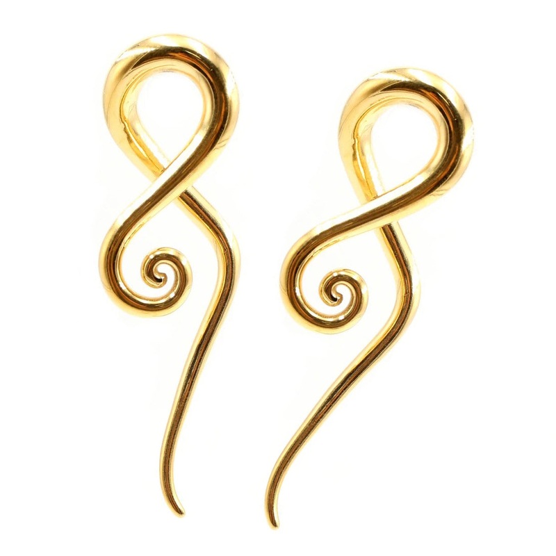 These 2 gaugetentacle hangers are cast from gold PVD coated 316L stainless steel.Dimensions:69.4mm high x 21mm wideWeight: 16.4 grams each piece