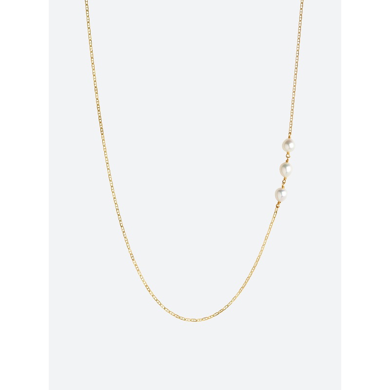 Stand out from the crowd with Maria Black Tessoro Necklace that beautifully displays three unique freshwater pearls.Fresh water pearl detailsChain length: 65cmMaterialsRecycled .925 sterling silver with 22k gold plating and natural pearlsNote, The pearls a