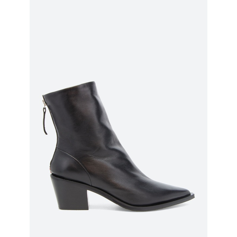 A versatile ankle boot with clean lines and a sleek silhouette that sits on a Cuban heel.Ankle heightBack zipper closure with leather pullPointed toeSignature red stitching at the heelPointed toeMeasurements:55 mm heelMaterialsUpper: leatherLining: leather