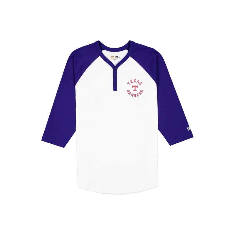 The Texas Rangers 2025 Batting Practice Long Sleeve T-Shirt features a screen-printed Rangers logo and wordmark at the left chest.
