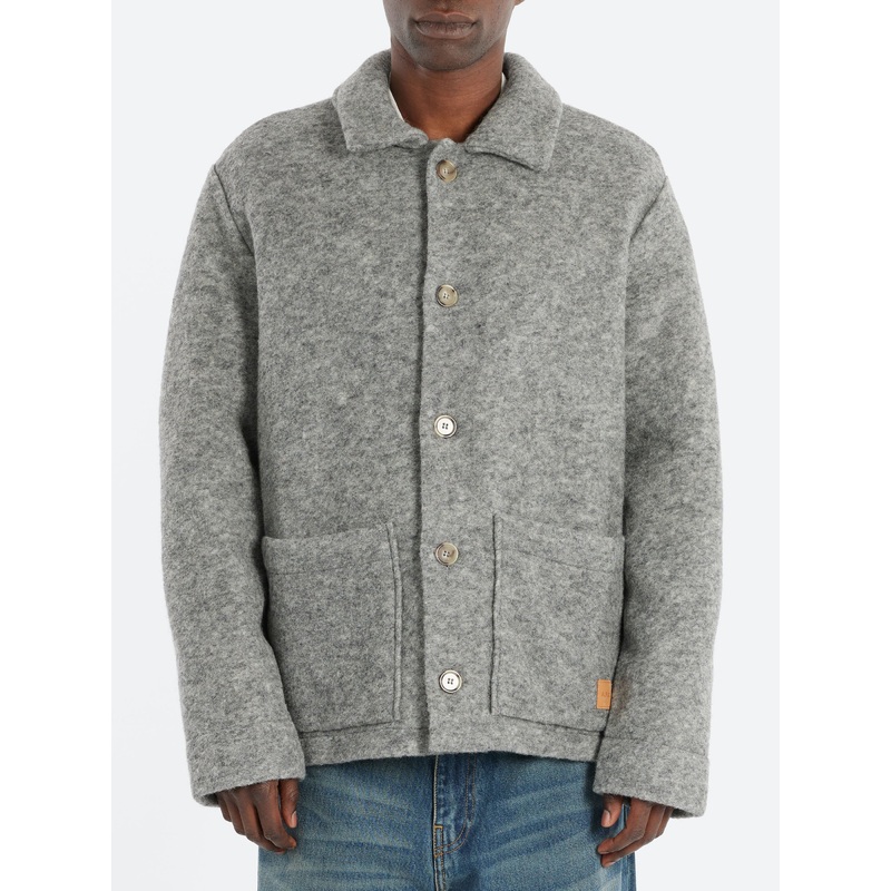 Pale heather grey unisex overshirt-style jacket in wool.