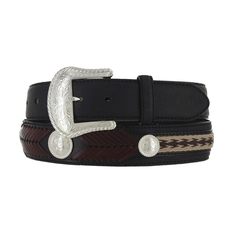 Vegetable-tanned, painted leather, hand lacing and a genuine silver-plated floral engraved buckle made this Tony Lama belt a standout.