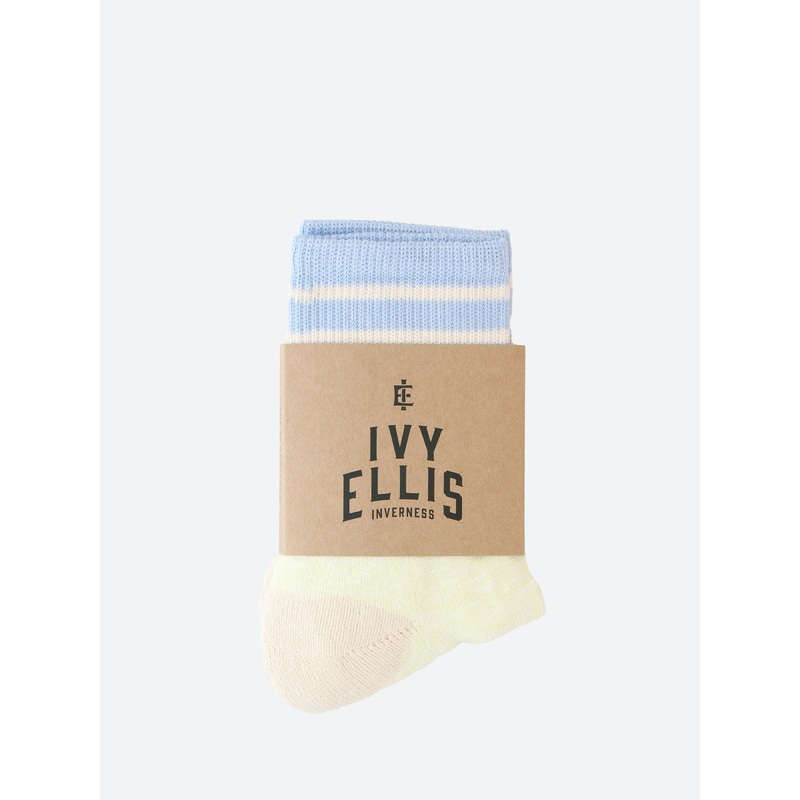 The Embo - named after one of the Scottish Highland coastlines. Made in soft yellow slub yarn with signature vintage cream heel and toe.Soft elasticated top in baby blue stripesVintage cream heel and toeMaterialsFabric Content: 86% cotton, 13% polyamide, 1
