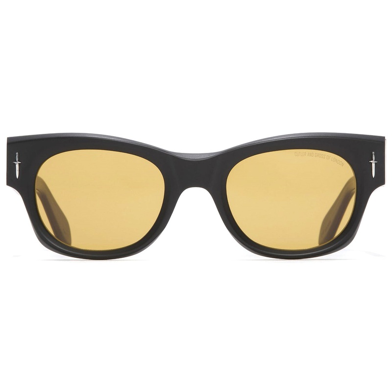 The Cutler and Gross The Great Frog // Halen reinvents the classic American wayfarer with a dark, gothic edge. Handcrafted in Italy, this premium frame features solid sterling silver dagger and Lock Down Chain emblems, secured with hex screws across chunky acetate temples that unfold to reveal The Great Frog logo. Fitted with 100% UVA/UVB lenses and hefty plectrum-style arms, its a bold fusion of metalwork heritage and luxury eyewear precision. Includes Cutler & Gross case, cleaning cloth, and 1-year manufacturer warranty.