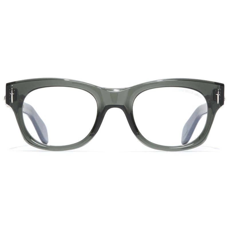 The Cutler and Gross x The Great Frog // Jimmi optical frame channels punk-rock energy with its sterling silver dagger studs on the front and Flaming Heart emblems at the temples. Beveling adds sculptural depth to this bold square silhouette, while plectru