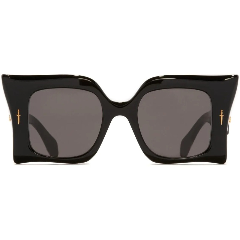 The Cutler and Gross // The Great Frog Medusa is a Limited Edition frame that elevates eyewear artistry to extraordinary heights. Handcrafted in our atelier, this maximalist design is meticulously carved and bevelled to create a faceted profile that echoes the mythic power of Medusa. Featuring The Great Frogs renowned metalwork, the frame is adorned with Dagger and Viper pins, each cast in Sterling Silver and plated in 24K Gold. A bold statement of craftsmanship and rock n roll rebellion, this frame is truly one of a kind. Includes Cutler & Gross case, cleaning cloth, and 1-year manufacturer warranty.