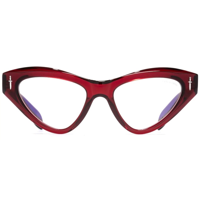The Cutler and Gross // The Great Frog Minicollaboration combines over 100 years of heritage craftsmanship, and this optical is a case in point. It’s sculpted by hand to an eccentric cat-eye silhouette with Dagger frontal pins cast from Sterling Silver. Lock Down chain core wire structures the 50s-inspired shape, pinned by Big Eye rivets.Includes Cutler & Gross case, cleaning cloth, and 1-year manufacturer warranty.