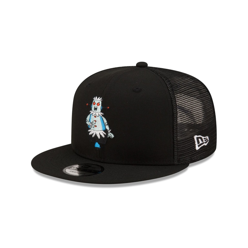 The Jetsons Rosie the Robot 9FIFTY Trucker Snapback features Rosie the Robot embroidered at the front panels with an adjustable closure at the rear and a gray undervisor.