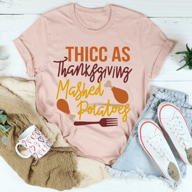 Thicc As Thanksgiving Mashed Potatoes Tee Heather Prism Peach S