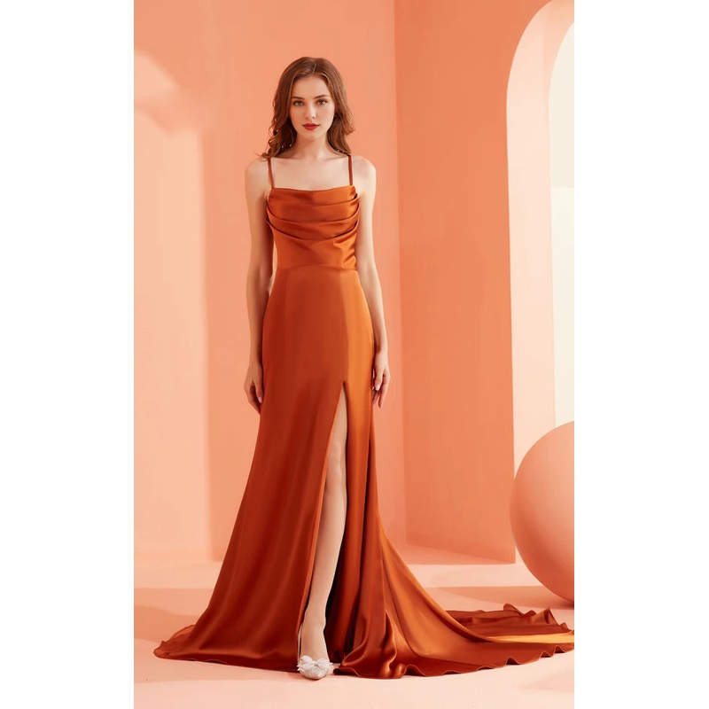 Thin shoulder strap hood with sleeveless collar side slits and floor length Prom dress