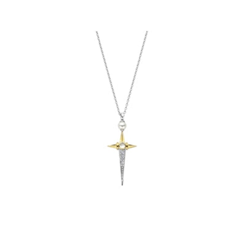Embrace the beauty of eternity with the TI SENTO Gold-Plated Silver Infinity Necklace 34085ZY in 43 cm, a timeless symbol of endless love and infinite possibilities. Expertly crafted from premium 925 sterling silver and plated with a warm layer of yellow gold, this elegant necklace features a delicate chain adorned with a stunning infinity-shaped lock. What sets this design apart is its versatilitythe infinity lock allows you to clip on pendants and combine it with other necklaces, offering endless opportunities for personalisation and layering. The pendant itself is an artful fusion of intertwined silver and gold elements, accented with pav-set cubic zirconia for a subtle sparkle that catches the light with every movement. Whether layered for a modern twist or worn solo as a statement of refined simplicity, this necklace embodies the essence of lasting connections and limitless style. Thoughtfully crafted for sensitive skin, it is nickel-free and hypoallergenic, ensuring luxurious comfort and lasting beauty.