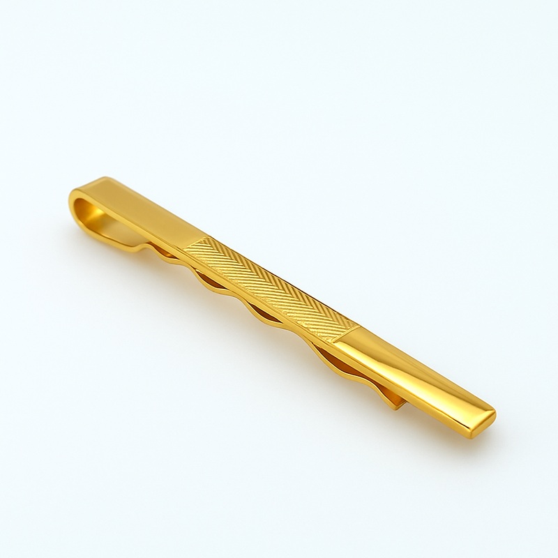 This gold-tone tie bar combines timeless elegance with refined craftsmanship. Featuring intricate detailing at its center, it adds a subtle yet distinguished highlight that enhances any tie, perfect for elevating your formal attire with a touch of classic sophistication.
